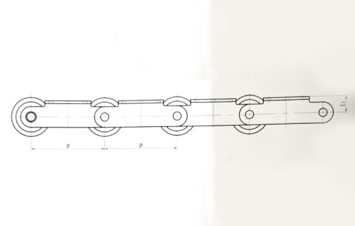 平板输送机的链条,由带K型附件的滚子套筒链和方管钢组成,该链条在负载运行时,滚子和链条导轨之间是滚动兼滑动的摩擦运动形式。